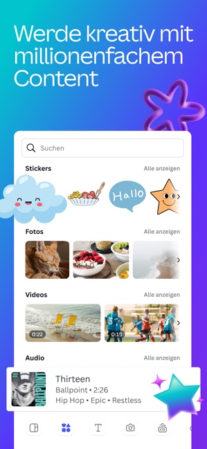 ERSTELLEN SIE ALLES MIT CANVA Canva ist Ihre All-in-One-Kreativplattform für beeindruckendes Grafikdesign, Fotobearbeitung und Videoerstellung. Von der Erstellung von Präsentationen und visuellen Tabellen bis hin zur Gestaltung von Lebensläufen und Social-Media-Inhalten – Canva ermöglicht es jedem, wie ein Profi zu gestalten. FORTGESCHRITTENER FOTO-EDITOR UND COLLAGEN-ERSTELLER Verwandeln Sie Ihre Fotos mit unserer leistungsstarken Bearbeitungssuite. Entfernen Sie Hintergründe mühelos mit unserem Hintergrundradierer, wenden Sie beeindruckende Filter an, passen Sie Helligkeit und Kontrast an und erstellen Sie auffällige Fotocollagen. Perfekt für soziale Medien, Marketing oder persönliche Projekte. PROFESSIONELLER VIDEO-EDITOR UND MOBILE OPTIMIERUNG Erstellen Sie ansprechende Videos mit unserem intuitiven Video-Editor. Fügen Sie Untertitel hinzu, wenden Sie filmische Effekte wie Zeitlupe an, synchronisieren Sie Ihre Bearbeitungen mit Musik durch Beat Sync und optimieren Sie Inhalte für die mobile Anzeige. Ideal für Social-Media-Reels, Geschäftspräsentationen oder kreatives Storytelling. Speichern Sie Ihre beste Arbeit mit 5 GB für alle. DYNAMISCHE PRÄSENTATIONEN UND DIASHOWS Erstellen Sie fesselnde Präsentationen und Diashows mit professionellen Vorlagen. Visualisieren Sie Daten effektiv, gestalten Sie interaktive Arbeitsblätter für die Bildung und erstellen Sie Präsentationen, die Ihr Publikum begeistern. Von Unternehmenspräsentationen bis hin zu Universitätsaufgaben – machen Sie jede Folie zum Erfolg. HERAUSRAGENDER LEBENSLAUF-ERSTELLER Erstellen Sie beeindruckende Lebensläufe, die Ergebnisse liefern. Durchsuchen Sie Hunderte professionell gestalteter Vorlagen, passen Sie Layouts an, um Ihre Persönlichkeit widerzuspiegeln, und erstellen Sie Dokumente, die die Aufmerksamkeit von Arbeitgebern auf sich ziehen. Unverzichtbar für Arbeitssuchende und Karriereentwicklung. VISUELLE TABELLEN UND AUTOMATISIERUNG MIT MASSENERSTELLUNG Verwandeln Sie Daten in überzeugende visuelle Tabellen und Infografiken. Nutzen Sie die KI-gestützte Massenerstellung, um automatisch Tausende von Design-Variationen für Werbekampagnen und Marketingmaterialien zu generieren. Perfekt für Unternehmen, die ihre kreative Produktion skalieren. UMFANGREICHE VORLAGENBIBLIOTHEK Wählen Sie aus Tausenden anpassbaren Vorlagen für Social-Media-Beiträge, Visitenkarten, Flyer, Einladungen, Logos, Memes und mehr. Jedes Design ist vollständig anpassbar, um zu Ihrer einzigartigen Marke und Ihrem kreativen Stil zu passen. ECHTZEIT-ZUSAMMENARBEIT Arbeiten Sie nahtlos in Echtzeit mit Teammitgliedern zusammen. Teilen Sie Designs sofort, sammeln Sie Feedback und arbeiten Sie gemeinsam an Projekten von überall aus. Ideal für kreative Teams, Studenten und professionelle Organisationen. ENTFESSELN SIE IHRE KREATIVITÄT Greifen Sie auf Tausende hochwertiger Vorlagen, Bilder und Designelemente zu. Erstellen Sie professionelle Designs mit leistungsstarken KI-Funktionen und erwecken Sie Ihre kreative Vision mit branchenführenden Tools zum Leben. CANVA FÜR BILDUNG Transformieren Sie Ihren Unterricht mit einer von Schulen und Bezirken verwalteten Canva-Erfahrung, die für das Klassenzimmer entwickelt wurde. Erstellen Sie ansprechendes visuelles Lernmaterial mit integrierter Moderation und altersgerechten Kontrollen für sichere, kollaborative Lektionen. Kostenlos für berechtigte Lehrer und Schüler der Klassen K-12. Nutzungsbedingungen: https://www.canva.com/policies/terms-of-use/ Datenschutzrichtlinie: https://www.canva.com/policies/privacy-policy/