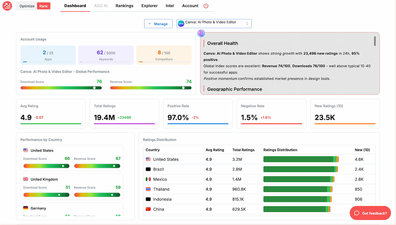 Research keywords, track your App Store rankings daily, and analyze what top competitors are doing - so you can grow organic installs with confidence.